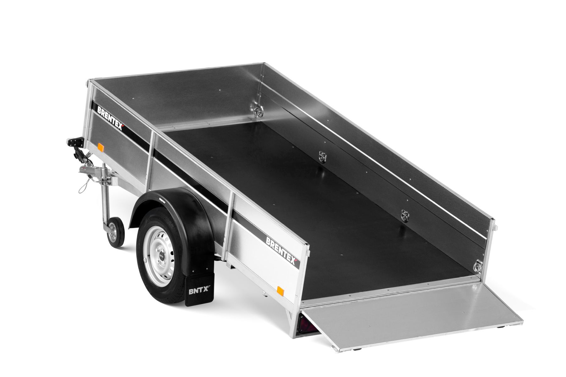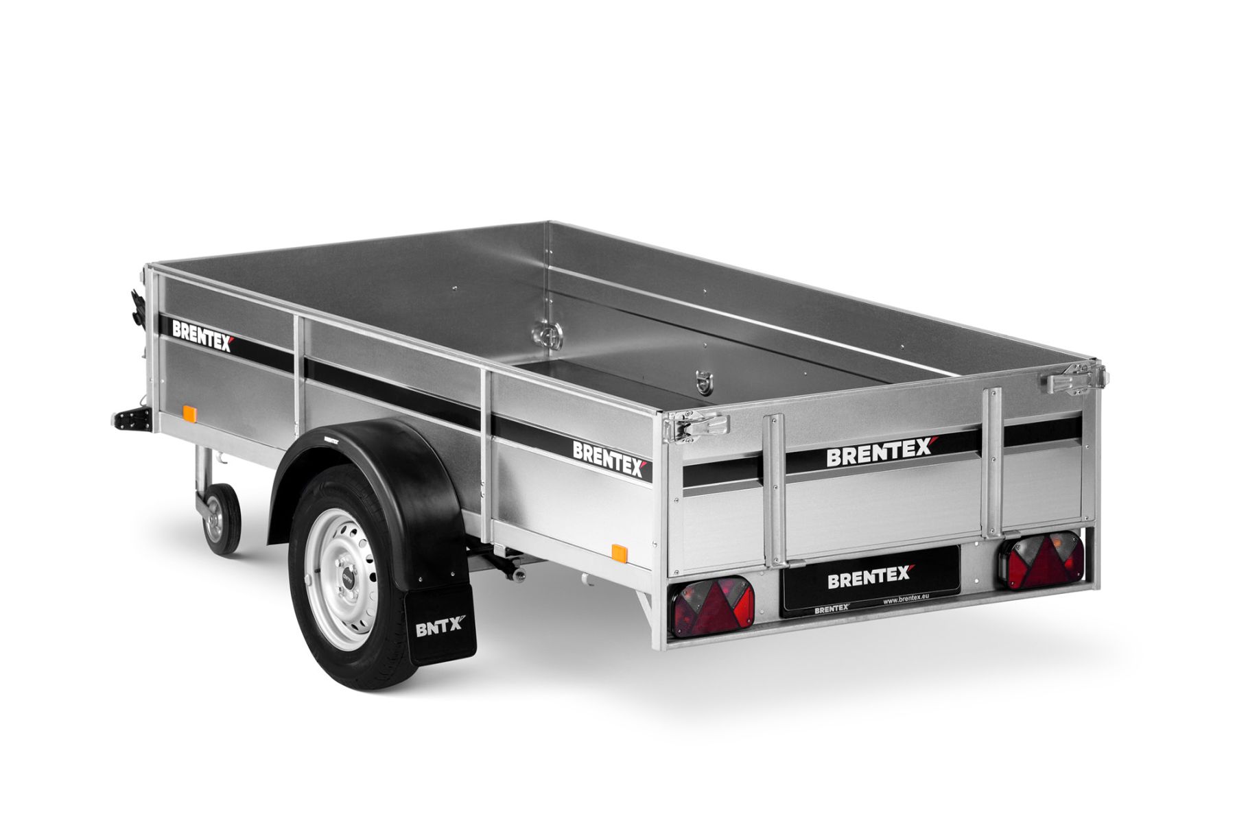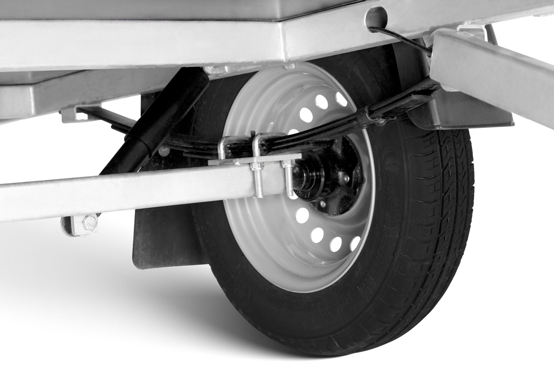 Одноосный грузовой прицеп на горячеоцинкованной цельносварной раме. Подходит как для индивидуального, так и для профессионального использования. Подвеска моста на рессорах: горячеоцинкованная балка моста, ступицы KNOTT (Германия), 3-листовые рессоры, амортизаторы. Дно ящика покрыто ламинированной водостойкой фанерой 12 мм. Передний и задний борт усилены двойным профилем, их можно откинуть назад или полностью снять. 8 петель для крепления груза внутри ящика и 4 крючка приварены снаружи к нижнему краю рамы. Электросистема Aspöck (Австрия), с адаптером на 7/13 контактов.