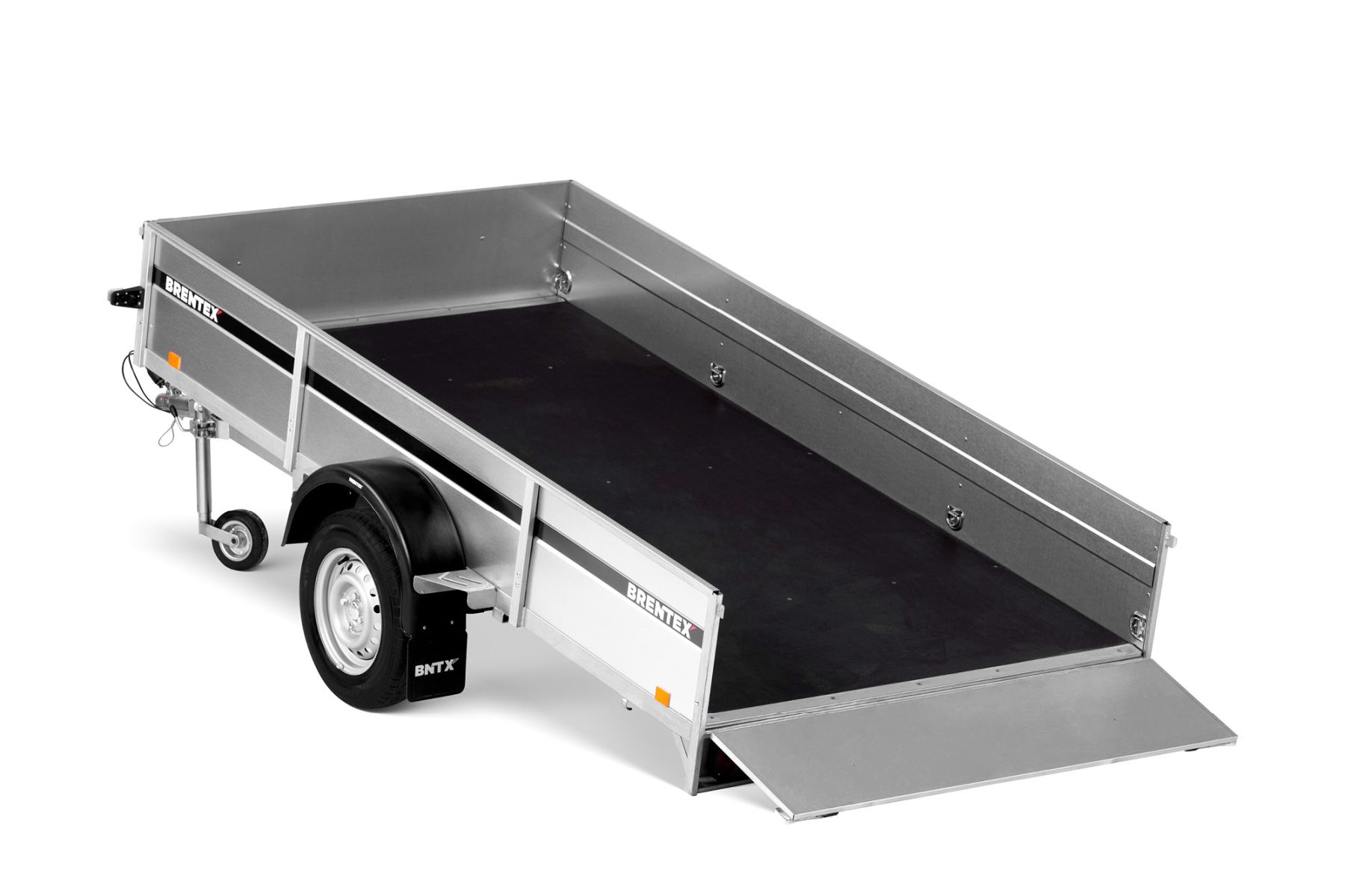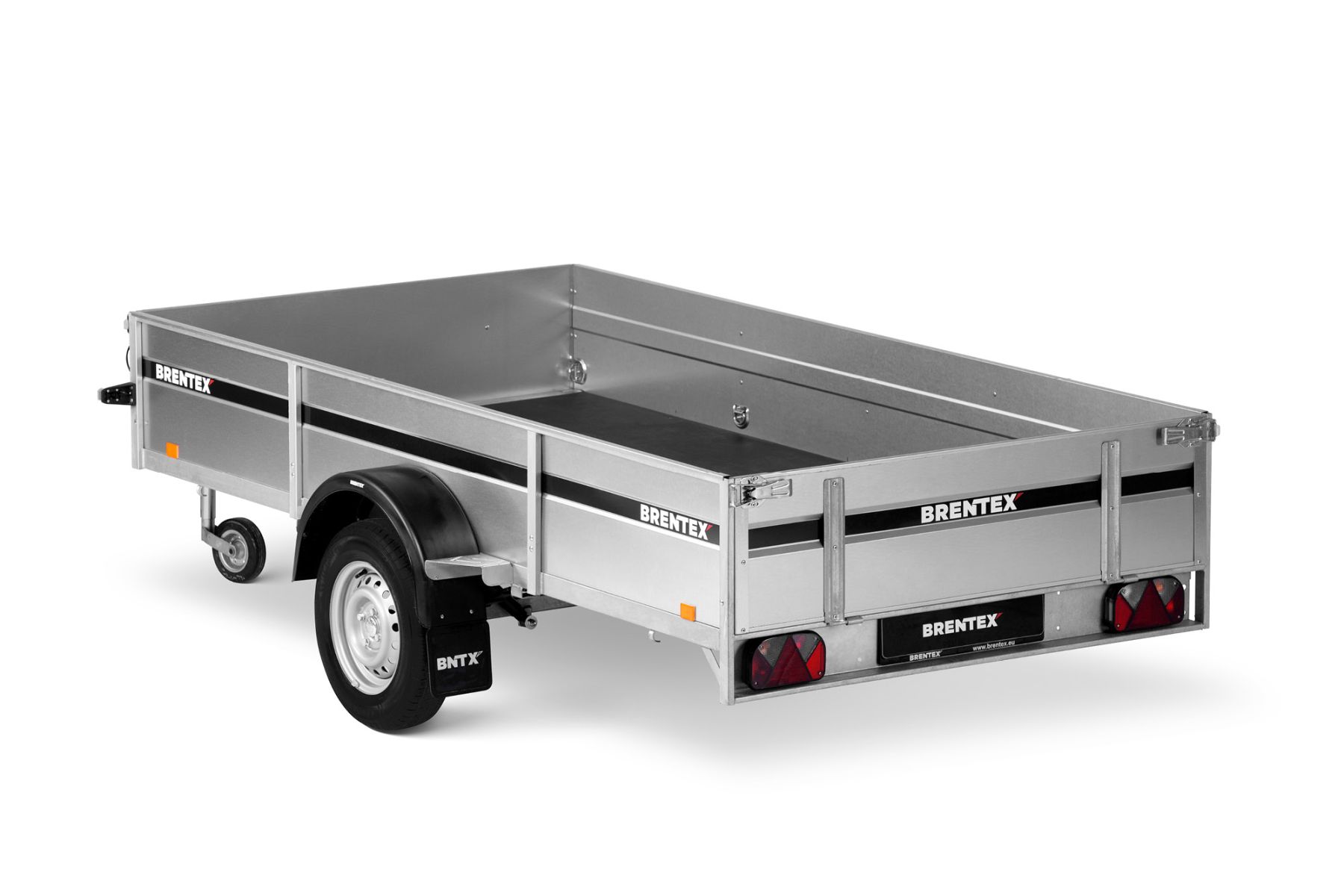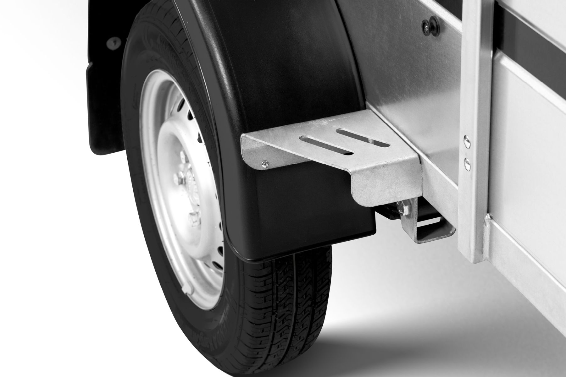 Одноосный грузовой прицеп на горячеоцинкованной цельносварной раме. Подходит как для индивидуального, так и для профессионального использования. Подвеска моста на рессорах: горячеоцинкованная балка моста, ступицы KNOTT (Германия), 4-листовые рессоры, амортизаторы. Дно ящика покрыто ламинированной водостойкой фанерой 12 мм. Передний и задний борт усилены двойным профилем, их можно откинуть назад или полностью снять. 8 петель для крепления груза внутри ящика и 4 крючка приварены снаружи к нижнему краю рамы. Электросистема Aspöck (Австрия), с адаптером на 7/13 контактов.