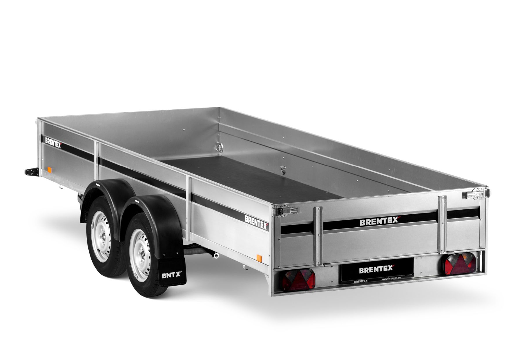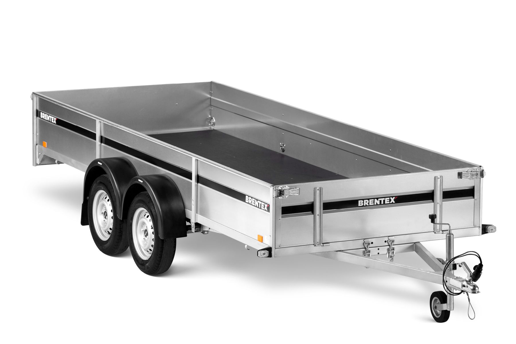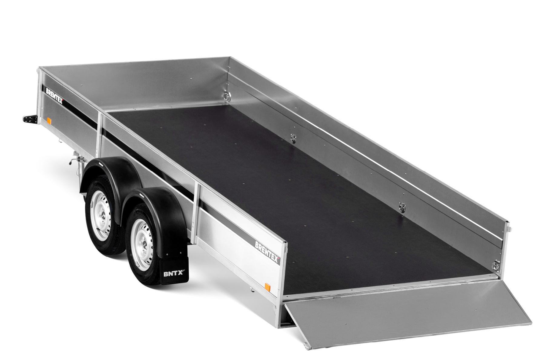 Двухосный прицеп на горячеоцинкованной цельносварной раме. Подходит как для индивидуального, так и для профессионального использования. Подвеска моста на рессорах: горячеоцинкованная балка моста, ступицы KNOTT (Германия), 3-листовые рессоры, амортизаторы. Дно ящика покрыто ламинированной водостойкой фанерой 12 мм. Передний и задний борт усилены двойным профилем, их можно откинуть назад или полностью снять. 8 петель для крепления груза внутри ящика и 4 крючка приварены снаружи к нижнему краю рамы. Электросистема Aspöck (Австрия), с адаптером на 7/13 контактов.