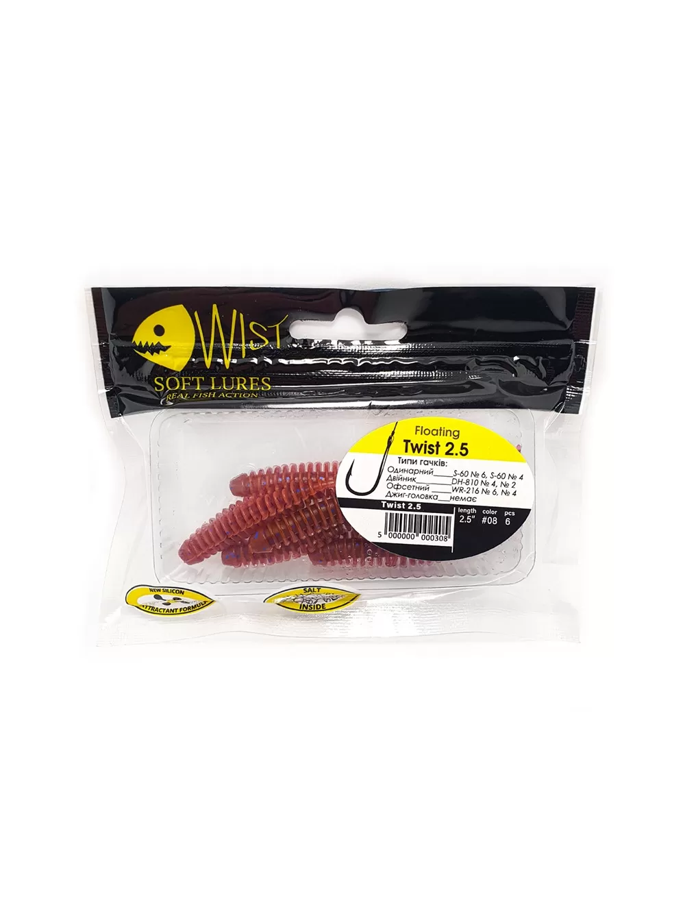 ЛИЧИНКА TWIST FLOATING 2,5" #8 (6 ШТ)